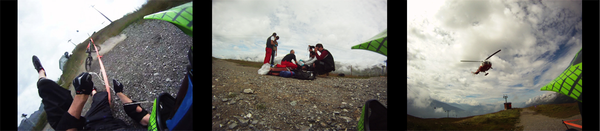 I posted some pictures on FB of a guy crashing in the Swiss mountains and getting airlifted off the mountain. Benny commented: “Danger Tim, is this you?”. Unfortunately I had to tell him yes, it is me. I had lived up to my name once again. When I visited Hobart in ’08 I met up with Benny and Mischa. After breaking my elbow in the first week (Editor: Crashed his bike) Ben and Mischa thought it would be a good idea to teach me some skills on a mountainbike and I must say, they did a fine job! (Editor: Tim failed to mention he was run-over by his own car whilst in Tassie. That particular run-in took off a LOT of bark). After the BnC Bike Bootcamp I left Tassie and went back home to mountainless Holland. Since than I’ve been showing off the BnC jersey while riding enduro races. Last week I left for a bikeholiday in Switserland with my girlfriend. Muddy forests and lack of altimeters were traded in for some serious Alpine terrain and we were loving it! On Friday I decided to take my DH-bike up the skilifts to have some fun on the trails with my friend Thomas. We had just starting going down the first decent when I completely overlooked a junction. The track curved hard right, while I was under the impression I had to go straight ahead. I hit a metal pole that was used to mark off the trail, getting launched in the air and hitting the dirt some heartbeats later. Result: dislocated kneecap, fissure in the kneecap and thighbone and a lot of pain. They flew in a helicopter to airlift me off the mountain. The French medic from the helicopter was a funny guy. He gave me a good dose of morfine and told me I would feel like I would be flying up in the air. Well, 2 minutes later I was in the helicopter so he was right about that… Yesterday I arrived back home and today they’ll take an MRI to see what the deal is with my ligaments. Hopefully I will be up and runnin asap, so I can start showing off the BnC jersey again!