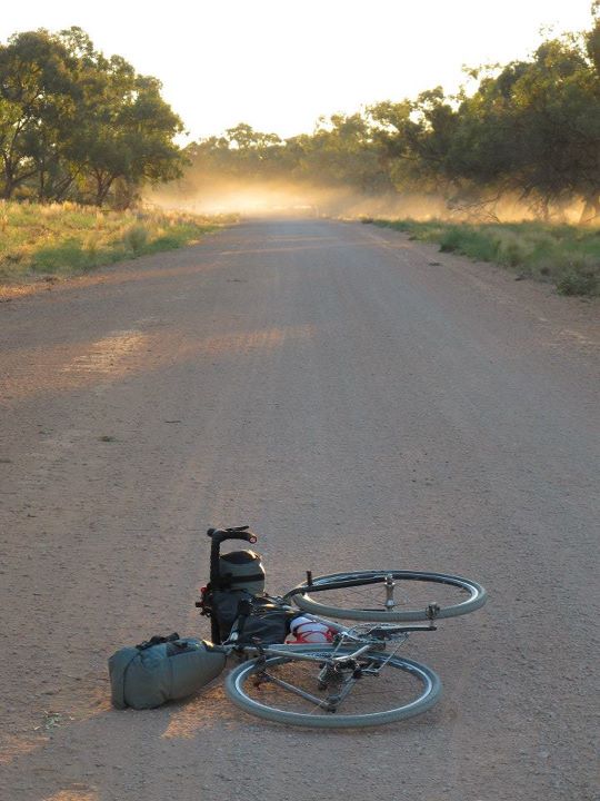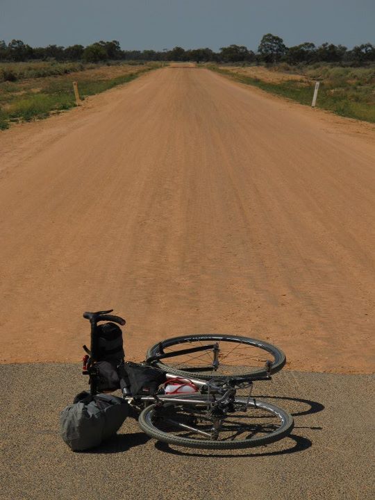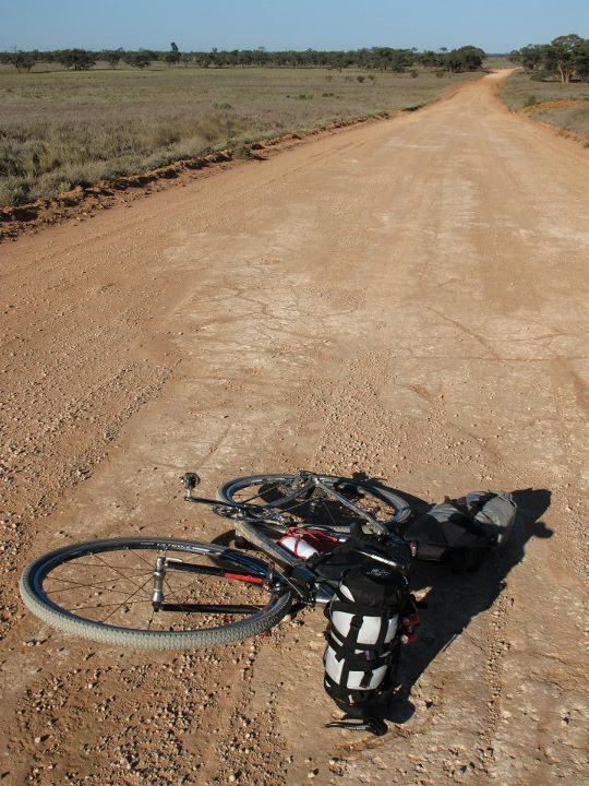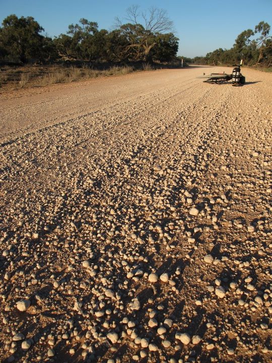From Avoca Station the road surface was quickly deteriorating with only short patches of the grey clay, regular sand drifts, corrugations, and a heavy gravel unsuited to my lightweight cx tires. The vibrations from the road soon became that bad I was unable to feel my hands and bolts on my bike were being shaken loose. I had to stop more than once to tighten everything up.