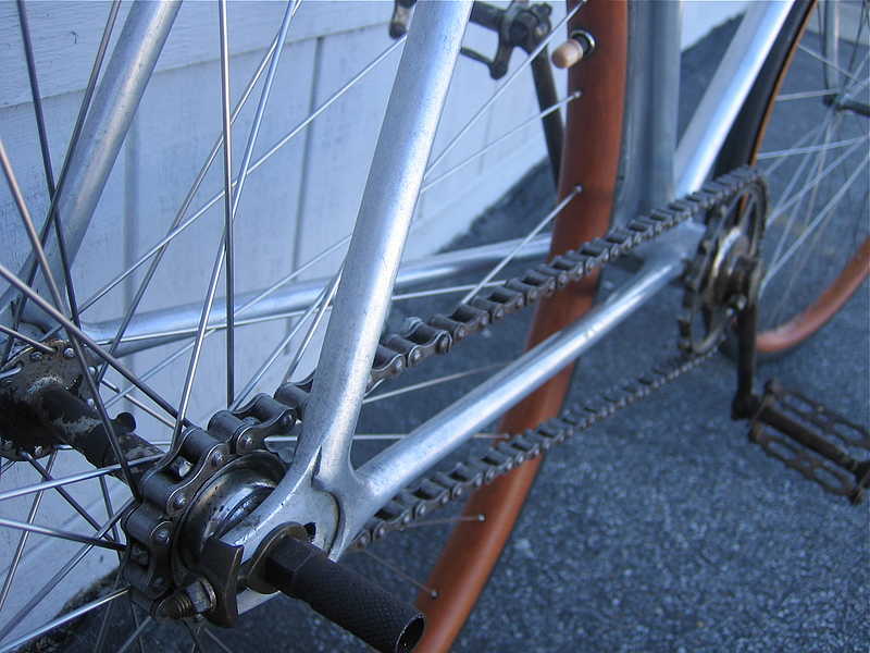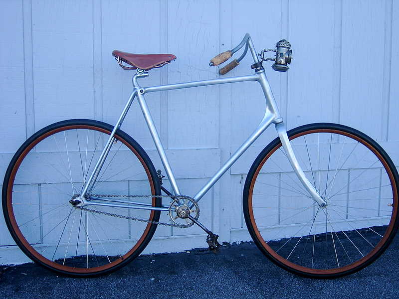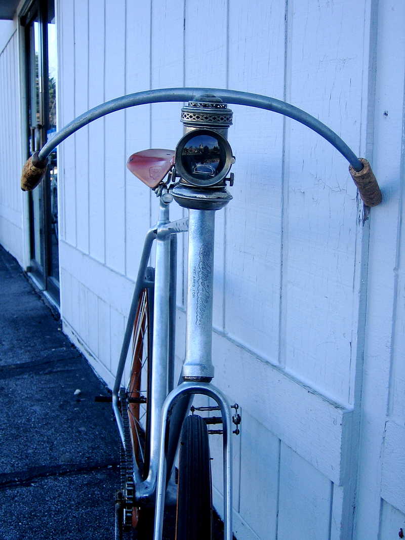 Whoa! This is one of the hottest vintage rides I’ve ever seen!! Pimp as fk! The owner claims it to be his Great-great Grandad’s ride, whipped up in 1896 outta cast aluminium! Still rollin’ on the original 27′ wooden tubular rims and skip tooth pitch chain. The lamp is a sweet brass kerosene number, I’d love to know what sort of illumination it would provide on the road ahead.. HID 1890’s style? Haha, nah. It’s got me so pumped for a full resto job… Think I’ll send my Dad around to Frunks Shed to pick up that Massey-Harris..